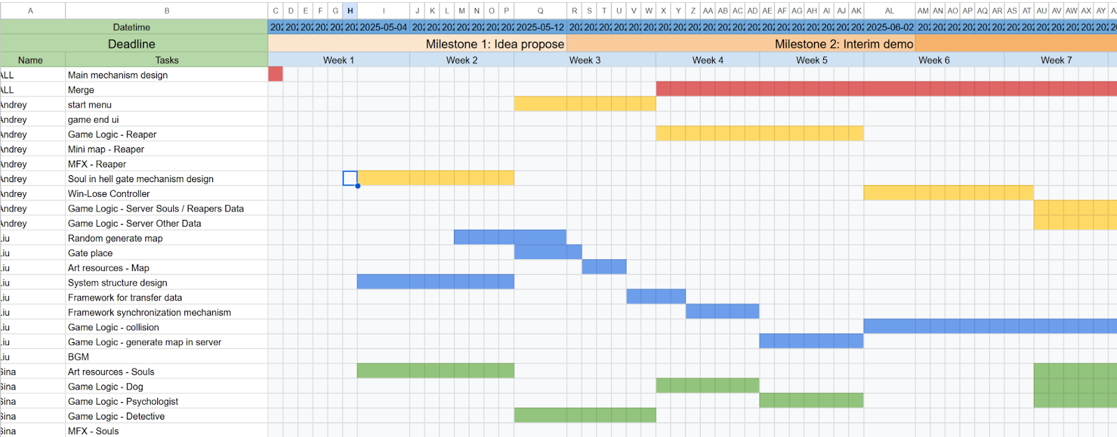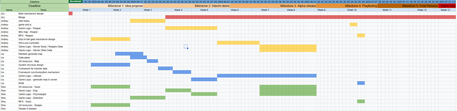 We met our project plan and milestones and absolutely followed the timeline designed at the beginning of semester, partially thanks to the experience of participating in the Game Lab course last semester. While some features were adjusted or re-scoped based on playtesting and feedback, the core roadmap was followed and all main deliverables were completed. - What improvements would you suggest for the course organization?