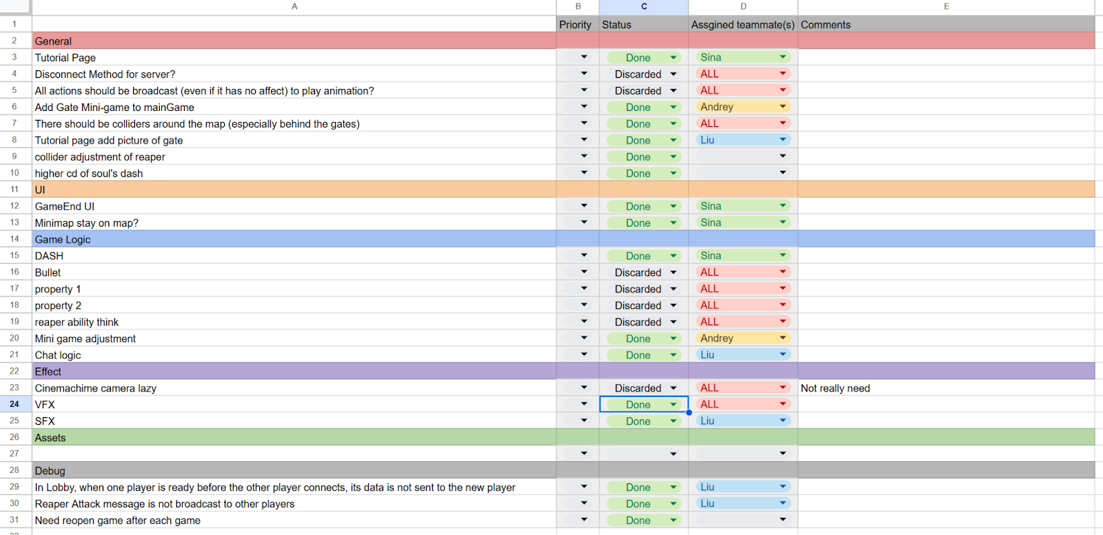 At the beginning of the project, we designed a detailed task list and timeline, which all team members followed closely. As the project progressed into later stages, we introduced a Kanban board to organize and track ongoing issues and tasks more effectively. Communication was maintained through a dedicated Discord channel, supplemented by weekly in-person and online meetings to ensure everyone was aligned and any challenges were addressed promptly.